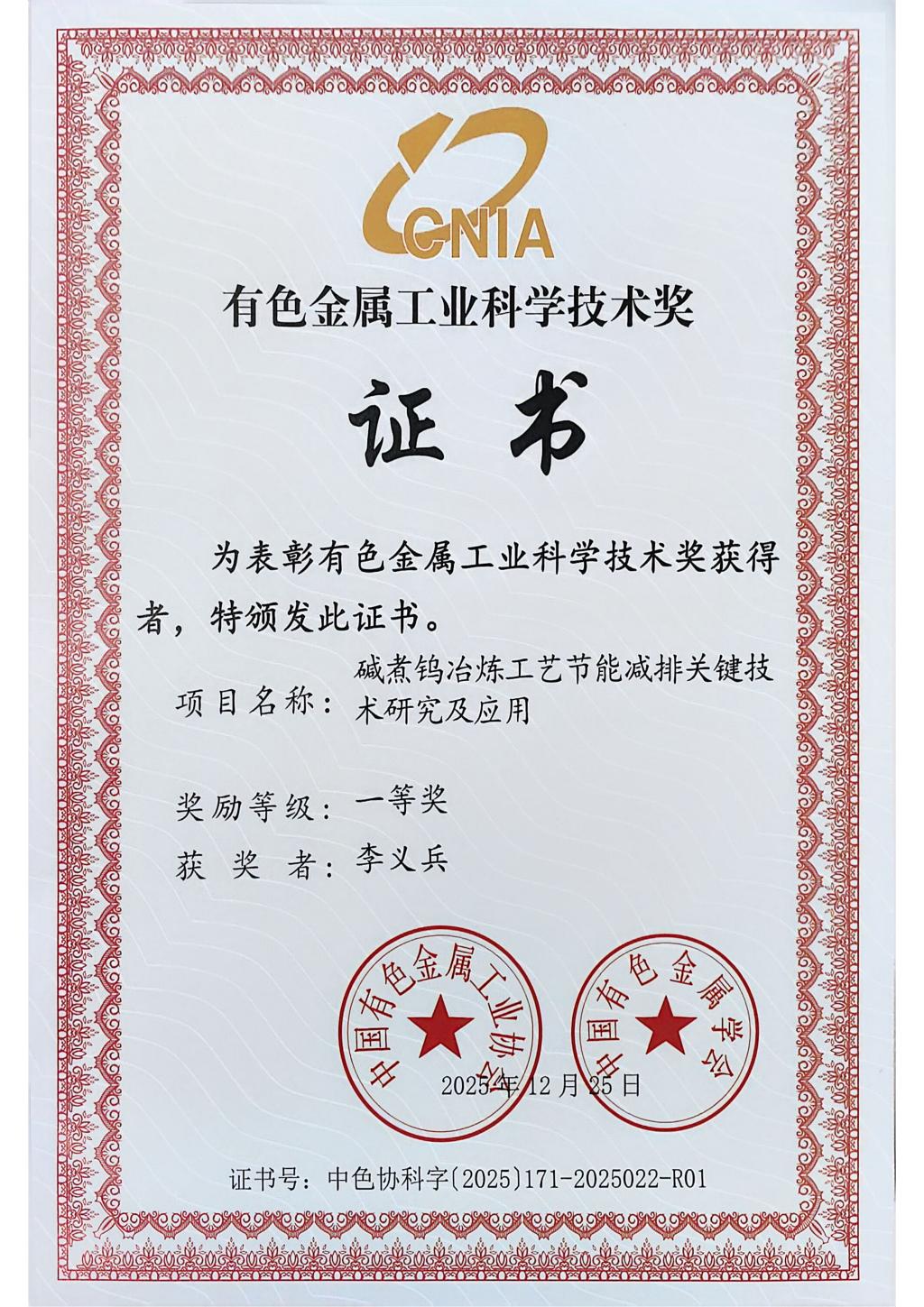 据悉,中国有色金属工业科学技术奖由中国有色金属工业协会和中国有色金属学会联合设立的省部级科技奖项,经科技部备案是有色金属行业唯一的全国性科技奖项,具有广泛社会影响力和行业认可度,其评选标准严格聚焦成果的创新性、实用性及行业贡献度。